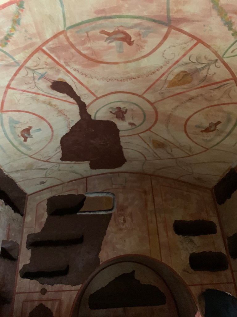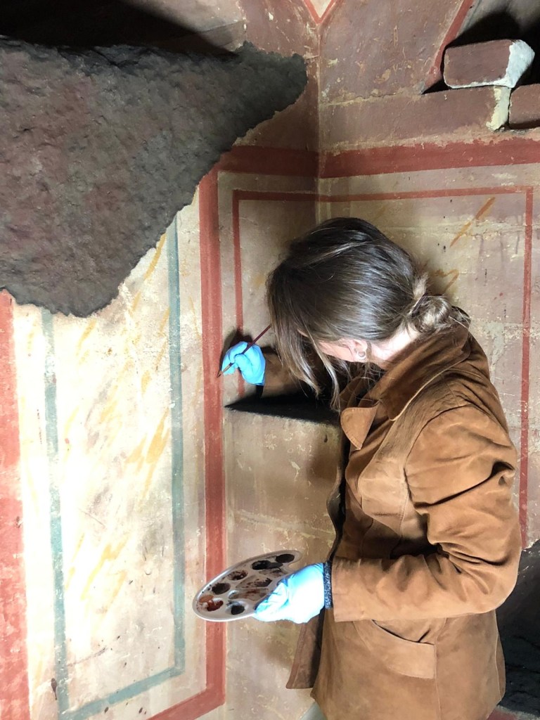 Restauratie van 65 cryptes in Museum Katakomben Valkenburg. In samenwerking met Stichting Restauratie Atelier Limburg worden 65 beschilderde cryptes in de catacomben van Valkenburg geretoucheerd. De cryptes zijn exacte kopieën van de catacomben in Rome, gebouwd en geschilderd in het begin van de twintigste eeuw. Niet alleen zijn de decoraties overgenomen uit Rome, maar ook de reeds bestaande beschadigingen. Dit maakt het retoucheren een enorm interessante uitdaging!